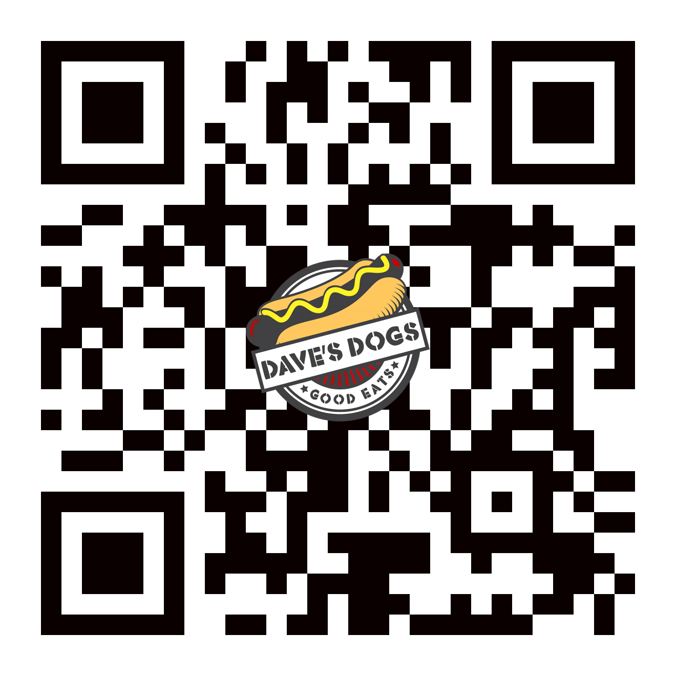 For the latest on our location, specials, and highlights from Dave’s Dogs, follow us on one (or all) of our social channels. Scan the QR code below to signup for our SMS location alerts.